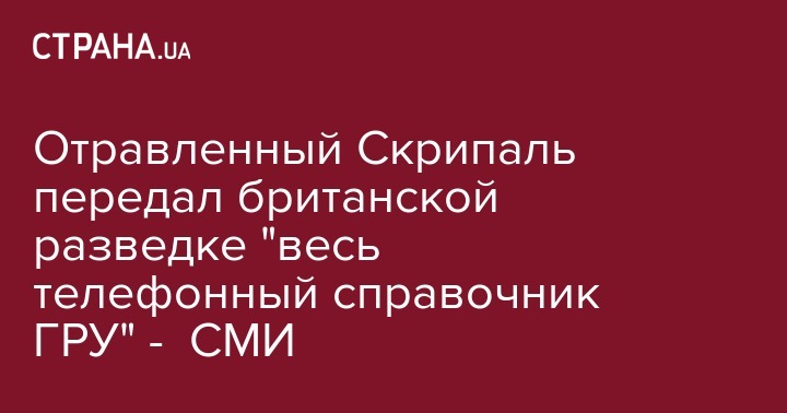 Отравленный Скрипаль передал британской разведке "весь телефонный справочник ГРУ" - СМИ