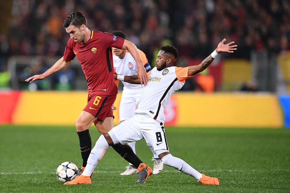 Римляне активно прессенгуют на половине поля Шахтера. Не без успеха.