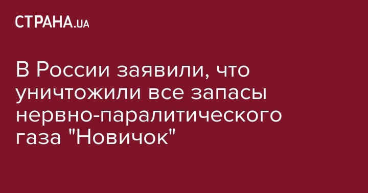 В России заявили, что уничтожили все запасы нервно-паралитического газа "Новичок"