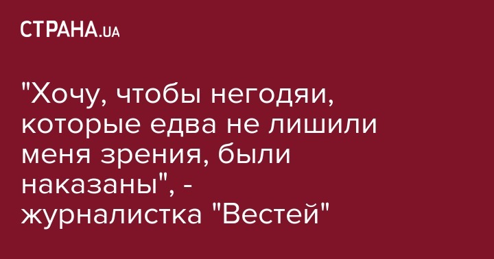 "Хочу, чтобы негодяи, которые едва не лишили меня зрения, были наказаны", - журналистка "Вестей"