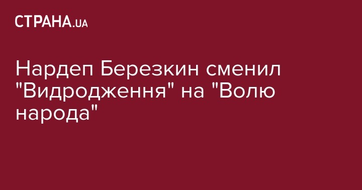 Народный депутат Станислав Березкин, который в конце февраля вышел из состава депутатской группы "Партия "Видродження", вошел в состав депутатской группы "Воля народа". Об этом сообщает "112 Украина".