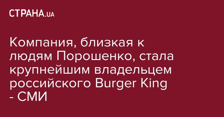 Компания, близкая к людям Порошенко, стала крупнейшим владельцем российского Burger King - СМИ
