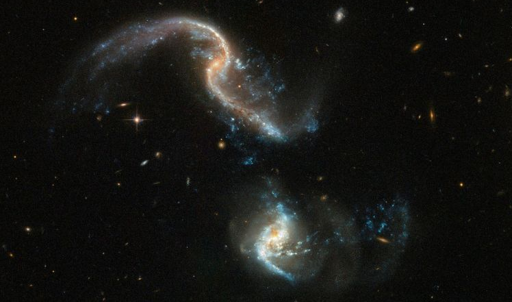 Пара сходящихся галактик была впервые замечена 52 года назад. Они похожи на естественный эксперимент, который проходит в космосе. Наблюдая за ними, астрономы могут лучше понять физические процессы, которые превращают спиральные и эллиптические галактики в новые образования.