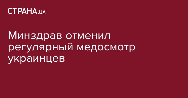 Министерство здравоохранения отменило диспансеризацию украинцев и контрольную карту диспансерного осмотра. С середины года для групп риска будут проводиться лишь скрининговые осмотры. Об этом сообщает пресс-служба Минздрава на странице в Facebook.
