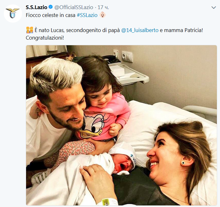 Кстати, за день до матча у испанского легионера Лацио Луиса Альберто Ромеро родился сын. C чем команда и поздравила его в официальном Twitter.