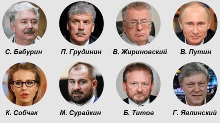 Согласно последним опросам общественного мнения, проводившимся в начале марта ФОМ и ВЦИОМ, кандидатуру Путина поддерживают от 64 до 69,7% россиян. Следующие за ним Жириновский и Грудинин не добирают и 10%, у Собчак чуть более 1%, у остальных кандидатов – меньше единицы.