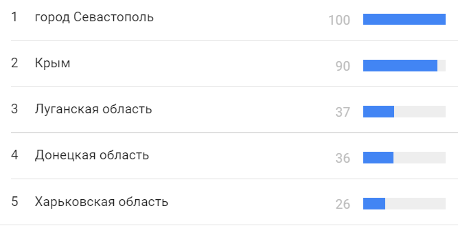 10:22  Если верить сервису Google Trends, то больше всего выборами в России интересуются жители Крыма, Донецкой и Луганской областей. Замыкают первую пятерку харьковчане.
