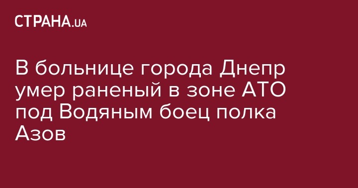 В больнице города Днепр умер раненый в зоне АТО под Водяным боец полка Азов