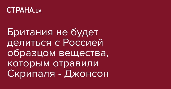 Глава МИД Великобритании Борис Джонсон заявил, что Великобритания не собирается посылать России образец вещества, которым в Солсбери отравили экс-разведчика ГРУ Сергея Скрипаля.