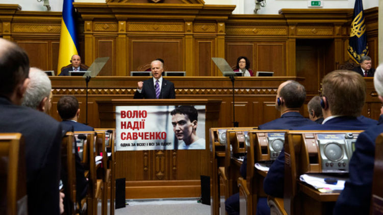 Тогда в Верховной Раде вывесили большой плакат в поддержку украинки. А народный депутат Игорь Мосийчук из Радикальной партии явился в Раду в футболке с надписью "Свободу Надежде Савченко".