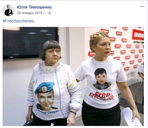 До этого Тимошенко красовалась в футболке с портретом Савченко и выкладывала фото в этом наряде в свой Facebook.