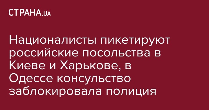 В воскресенье, 18 марта, в день выборов президента России, националисты пикетируют российские посольства в Киеве и Харькове, где должны быть открыты избирательные участки, а в Одессе правоохранители заблокировали здание российского консульства.