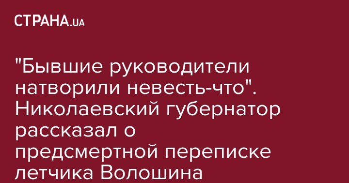 "Бывшие руководители натворили невесть-что". Николаевский губернатор рассказал о предсмертной переписке летчика Волошина