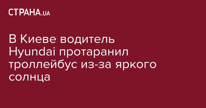 В Киеве на пересечении Воздухофлотского проспекта и улицы Курской из-за яркого солнца водитель автомобиля Hyundai выехал на перекресток на красный сигнал светофора и протаранил троллейбус. О ДТП сообщает Kyiv Operativ в своем канале Telegram.