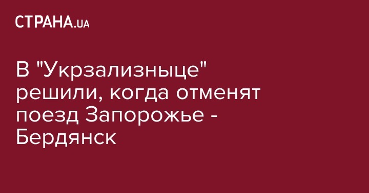 "Укрзализныця" планирует отменить поезд №608/607 направлением "Запорожье - Бердянск - Запорожье" с 12 апреля. Решение приняли в связи с запуском нового железнодорожного маршрута в Бердянск, который будет ходить из Киева. Об этом сообщает gazeta.zp.ua.