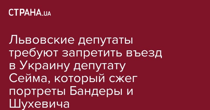 Львовский областной совет обратился к Министерству иностранных дел Украины и Службе безопасности Украины с требованием запретить въезд в Украину депутату польского Сейма Роберту Винницкому за сожжение им портретов Романа Шухевича и Степана Бандеры.