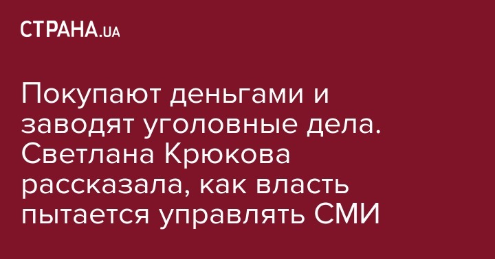 Покупают деньгами и заводят уголовные дела. Светлана Крюкова рассказала, как власть пытается управлять СМИ