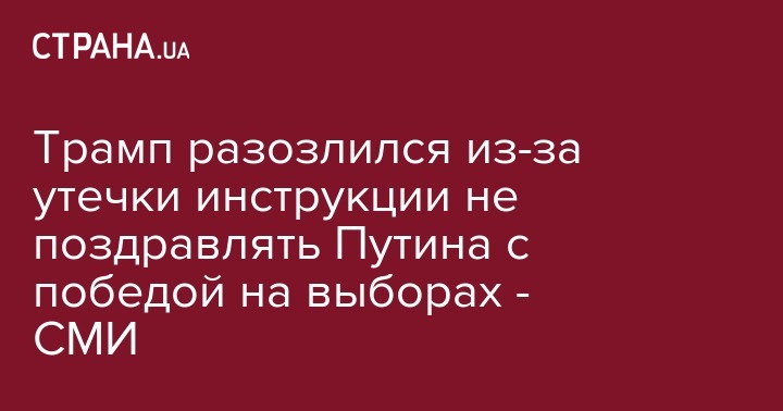 Президент США Дональд Трамп разозлился из-за того, что в СМИ быстро просочилась информация о том, что советники по национальной безопасности рекомендовали ему не поздравлять Владимира Путина с переизбранием на посту президента РФ.