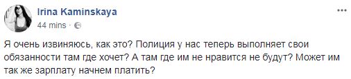"Полиция у нас теперь выполняет свои обязанности там, где хочет? А там, где им не нравится, не будет?", - спрашивает Ирина Каминская.