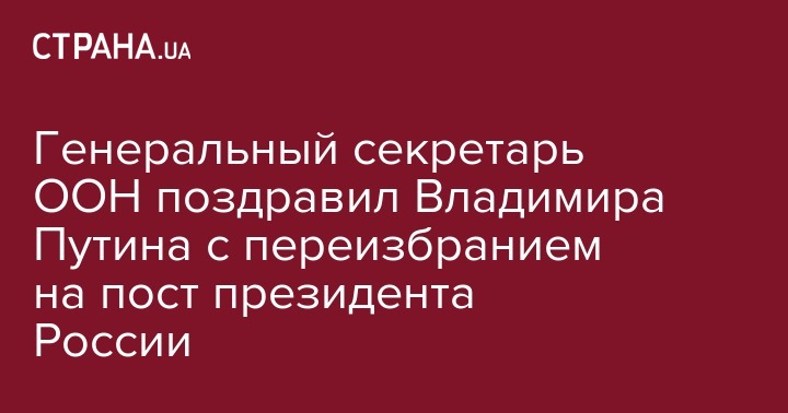 Генеральный секретарь ООН поздравил Владимира Путина с переизбранием на пост президента России