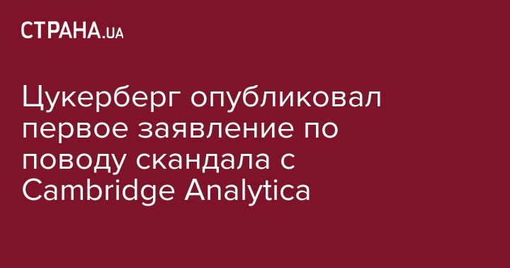 Основатель Facebook Марк Цукерберг сделал первое заявление по поводу ситуации с британской аналитической компанией Cambridge Analytica, которая работала во время избирательной кампании на Дональда Трампа, хранила и анализировала данные примерно о 50 млн граждан, имеющих страницы в соцсети.