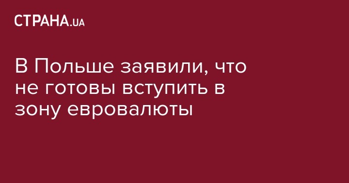 Премьер-министр Польши Матеуш Моравецкий заявил, что страна пока не готова вступить в валютную зону евро.