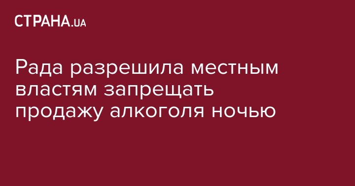 Верховная Рада Украины приняла закон, который предоставляет право органам местного самоуправления устанавливать запрет на продажу алкогольных напитков в ночное время, а также разрешает штрафовать торговые заведения в связи с нарушением правил продажи алкоголя.