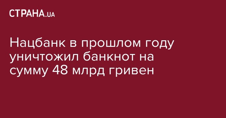 Нацбанк в прошлом году утилизировал изношенных и поврежденных гривневых банкнот на сумму в 48 млрд 355,5 млн гривен.