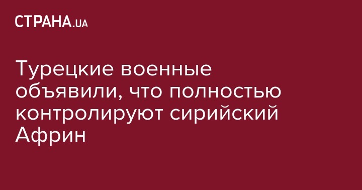 Вооруженные силы Турции, которые вошли в сирийский район Африн 18 марта, установили полный контроль над всеми поселениями в регионе.