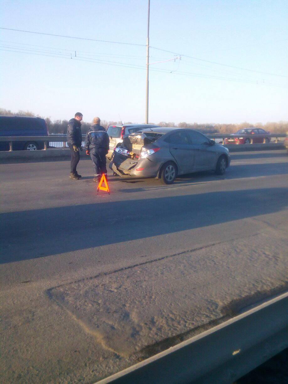 Четыре ДТП. В Киеве намертво стало движение через Северный мост