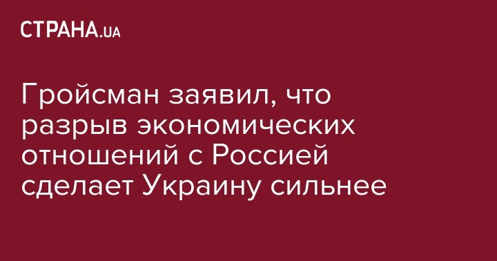 Премьер-министр Украины Владимир Гройсман заявил, что решение правительства Украины о разрыве программы экономического сотрудничества с Россией, начатой в 2011 году, пойдет только на пользу Украине, сбалансирует ее экспортную политику и сделает страну сильнее.
