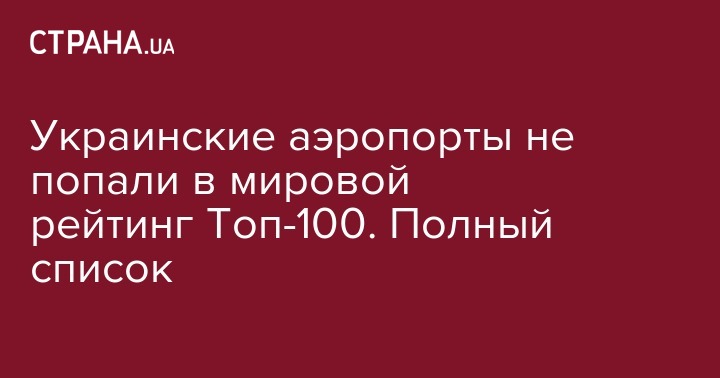 Украинские аэропорты не попали в мировой рейтинг Топ-100. Полный список