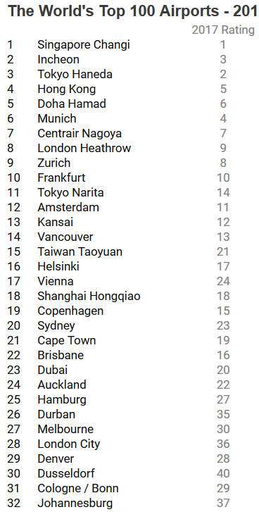 За ним в рейтинге идут: южнокорейский Инчхон, токийский Ханэда, а также аэропорты Гонконга и Дохи.