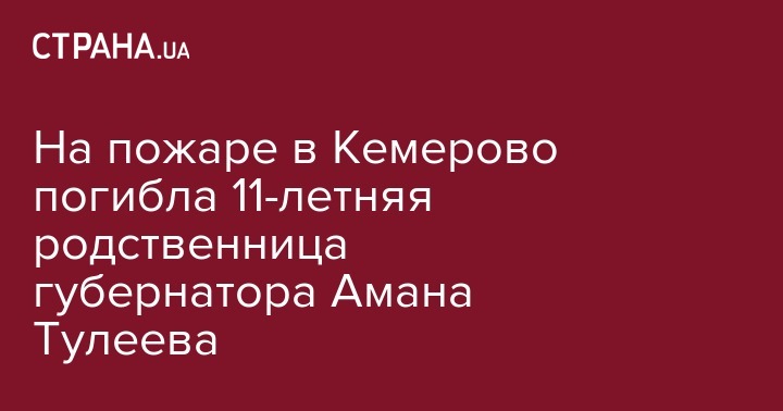 "Стало известно, что одной из погибших на пожаре в ТЦ оказалась 11-летняя родственница губернатора Амана Тулеева", - сказал собеседник агентства.