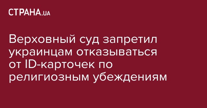 Сегодня, 26 марта, Кассационный административный суд Верховного суда запретил гражданам отказываться от получения карт удостоверения личности (ID-карточек) по религиозным убеждениям. Об этом сообщают "Украинские новости".