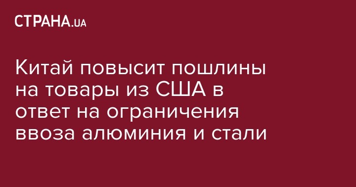Китай повысит пошлины на товары из США в ответ на ограничения ввоза алюминия и стали