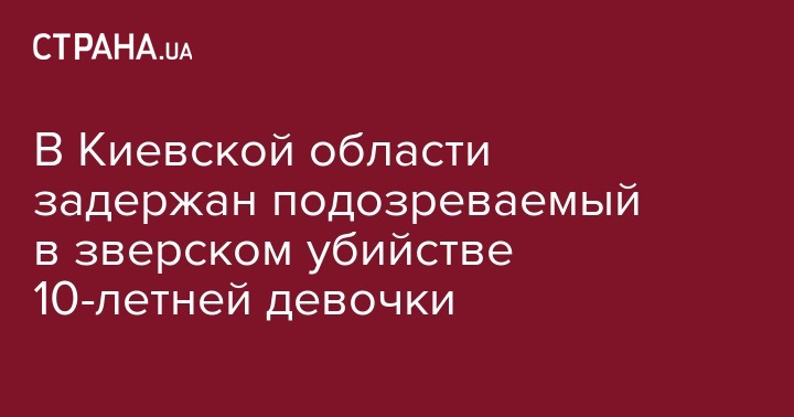 В Киевской области задержан полицией 24-летний уроженц Одесской области, проживающий в селе Нижняя Дубечня Вышгородского района, который разыскивался по подозрению в убийстве 10-летней девочки. Об этом говорится в сообщении пресс-службы ГУ Нацполиции Киевской области.