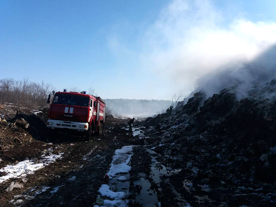 "26 марта в 09.20 поступило сообщение о пожаре, который возник на территории Полтавской городской свалки твердых бытовых отходов, в селе Макуховка Полтавского района. Пожарные, прибывшие на вызов, установили, что горит мусор на площади 200 кв.м. Пожар был локализован в 12:00. По состоянию на 21:00 ликвидирован пожар на площади 150 кв.м. Работы по тушению пожара продолжаются", - говорится в сообщении.