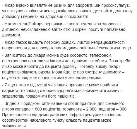 Супрун также привела примеры того, что будет входить в обязанности врачей первичного звена (терапевтов, педиатров, семейных врачей) с 1 июля этого года, в соответствии с Порядком оказания первичной медицинской помощи: