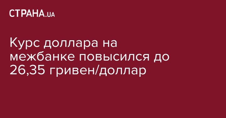 В среду, 27 марта, курс гривны к доллару ослабился на три копейки на межбанке - до 26,35 гривен за доллар по сравнению с предыдущим днем. Курс в покупке повысился на 3 копейки - до 26,32 грн/долл. Об этом сообщает компания "Укрдилинг".