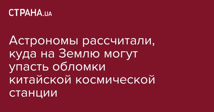 Как сообщала "Страна", в апреле этого года вероятность падения на Землю несгоревших в плотных слоях атмосферы обломков китайской космической станции "Тяньгун-1" ("Небесный дворец 1") составляет уже 60%.
