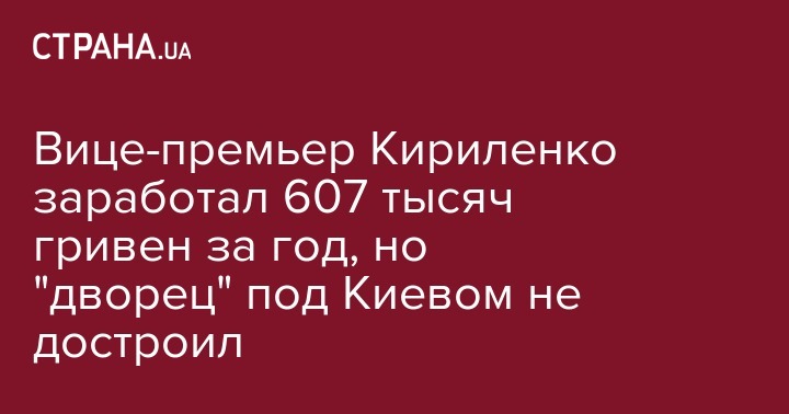 Вице-премьер Кириленко заработал 607 тысяч гривен за год, но "дворец" под Киевом не достроил