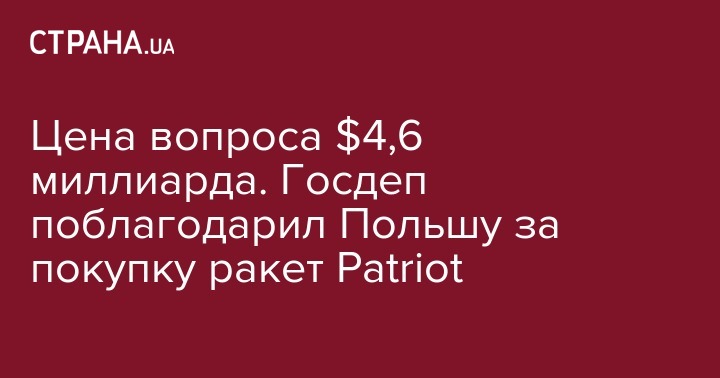 "США приветствуют подписание в Варшаве контракта о первой фазе поставок оборонных ракетных систем "Patriot" стоимостью $4,6 млрд", - говорится в заявлении Госдепа.