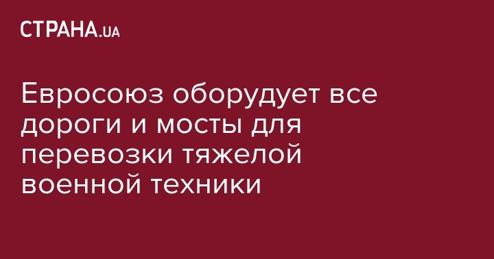 Согласно документу, автодороги, мосты и железные дороги на территории Евросоюза до 2019 года должны быть проверены на пригодность для транспортировки военной техники.