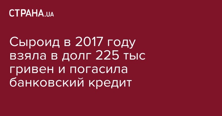 Сыроид в 2017 году взяла в долг 225 тыс гривен и погасила банковский кредит