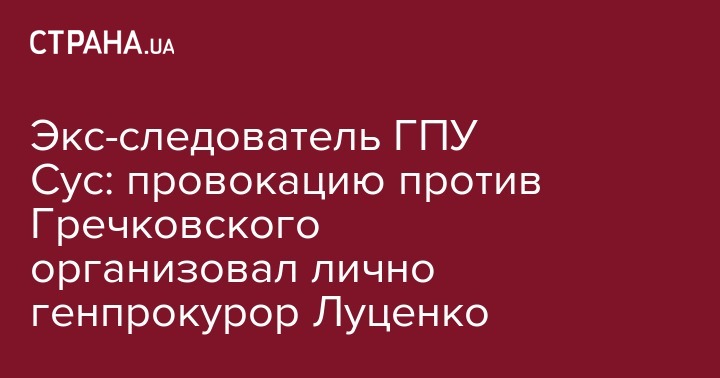 Сус, в частности, рассказал о том, что дело против Гречковского было провокацией, организованной непосредственно главой ГПУ Юрием Луценко по заказу одного из украинских бизнесменов.