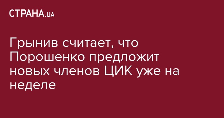 Грынив считает, что Порошенко предложит новых членов ЦИК уже на неделе