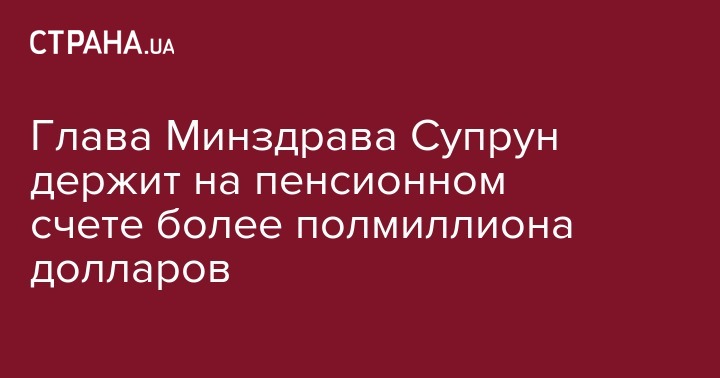 Глава Минздрава Ульяна Супрун, которая недавно изменила имидж, задекларировала 555 тысяч 663 доллара на пенсионном счете. Об этом свидетельствуют данные декларации Супрун за 2017 год на сайте е-деклараций.