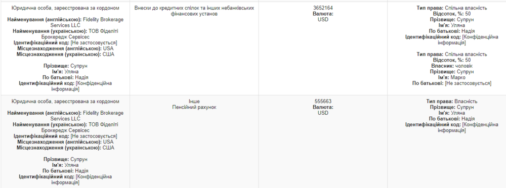 Также Ульяна Супрун указала, что имеет более 140 тысяч гривен на банковских счетах в "Кредобанке" и "Укргазбанке". Совместно со своим мужем глава Минздрава задекларировала также 8,3 тысяч долларов на счетах в американском банке.