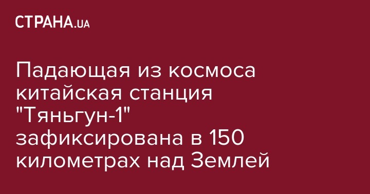 В ночь на 2 апреля китайская космическая станция "Тяньгун-1" войдет в атмосферу Земли. Известно, что она уже начала разрушаться на высоте 150 километров, однако некоторые обломки могут не успеть сгореть.